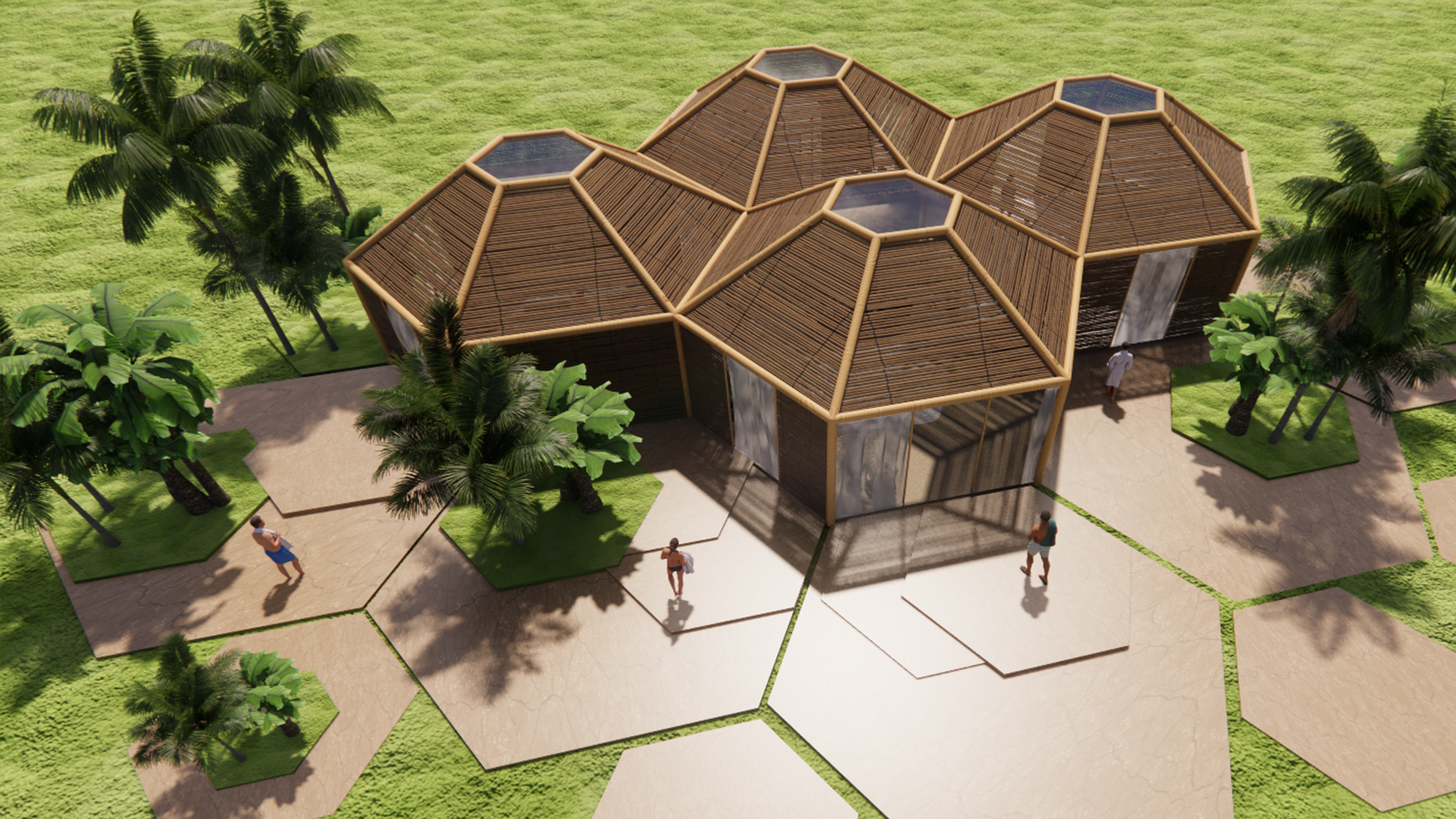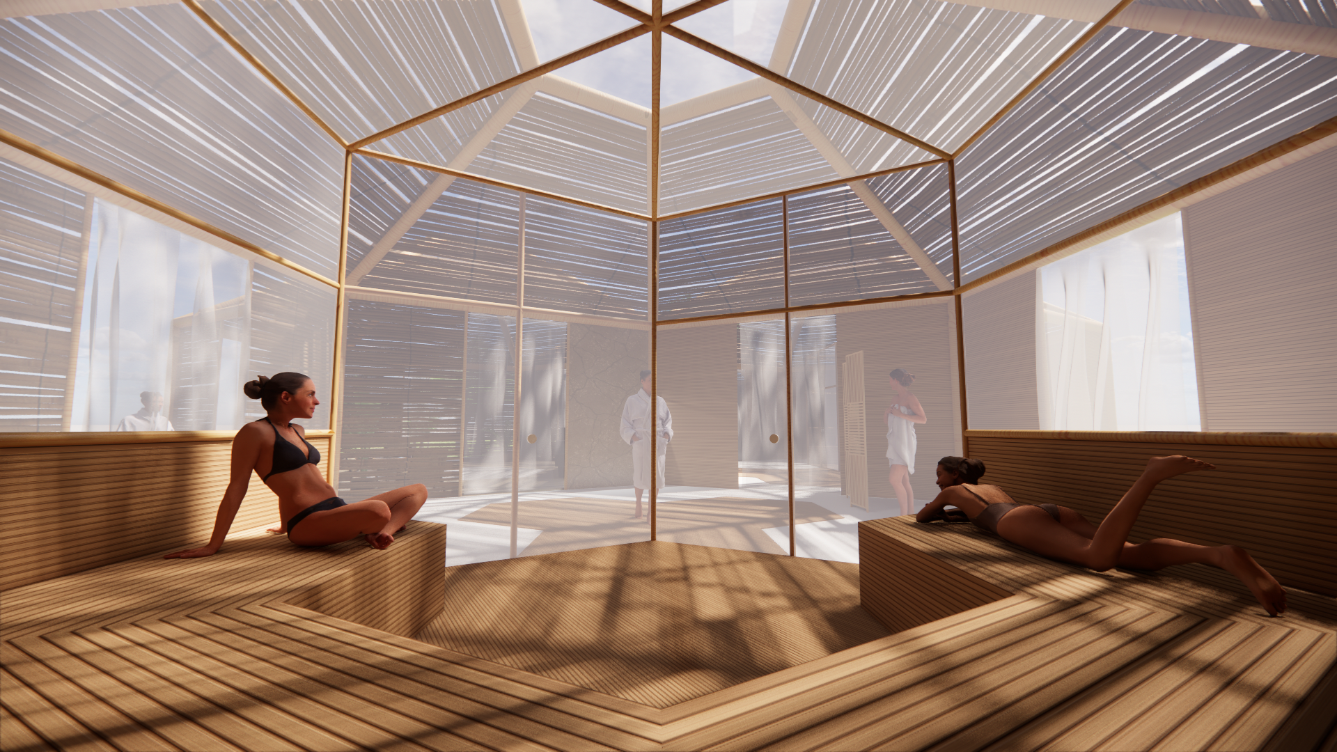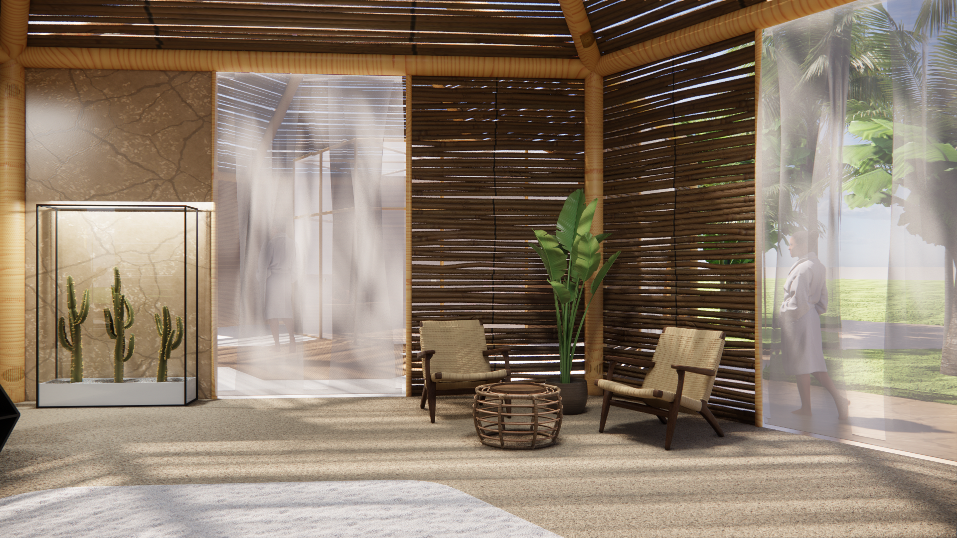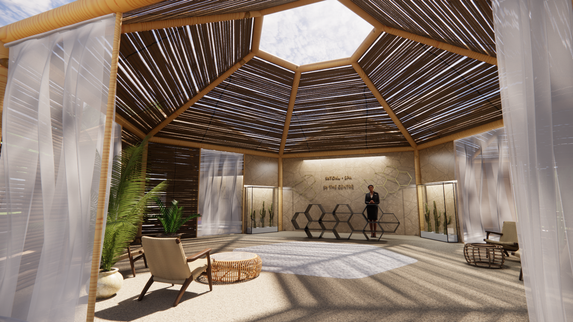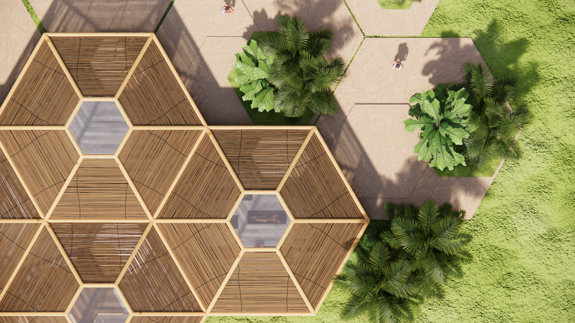 A sustainable Spa Center proposal, part of a larger hospitality complex, located in the natural preserve area of Bacalar, Mexico. The hexagonal pods were inspired by beehives, as a natural shape found in nature. In the same time the hexagonal strategy allows for growth over time, while depending on the demand as well as the preferences of the visitors, anytime there can be easily build up and connected more pods to the on-growing structure. The specific eco structures have been proposed to be entirely made out of local and eco-friendly materials and techniques, while having sustainability as one the main design drivrers. Timber, bamboo and rammed earth would be the primary materials that would come together in order to create the pods.